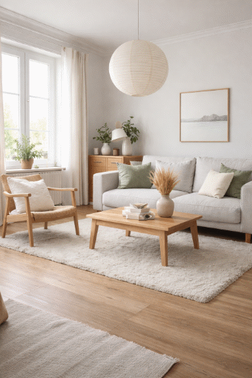 淺色木地板與原木家具是北歐風的靈魂,溫潤質地平衡了冷色牆面,使空間在簡約中保有溫度。