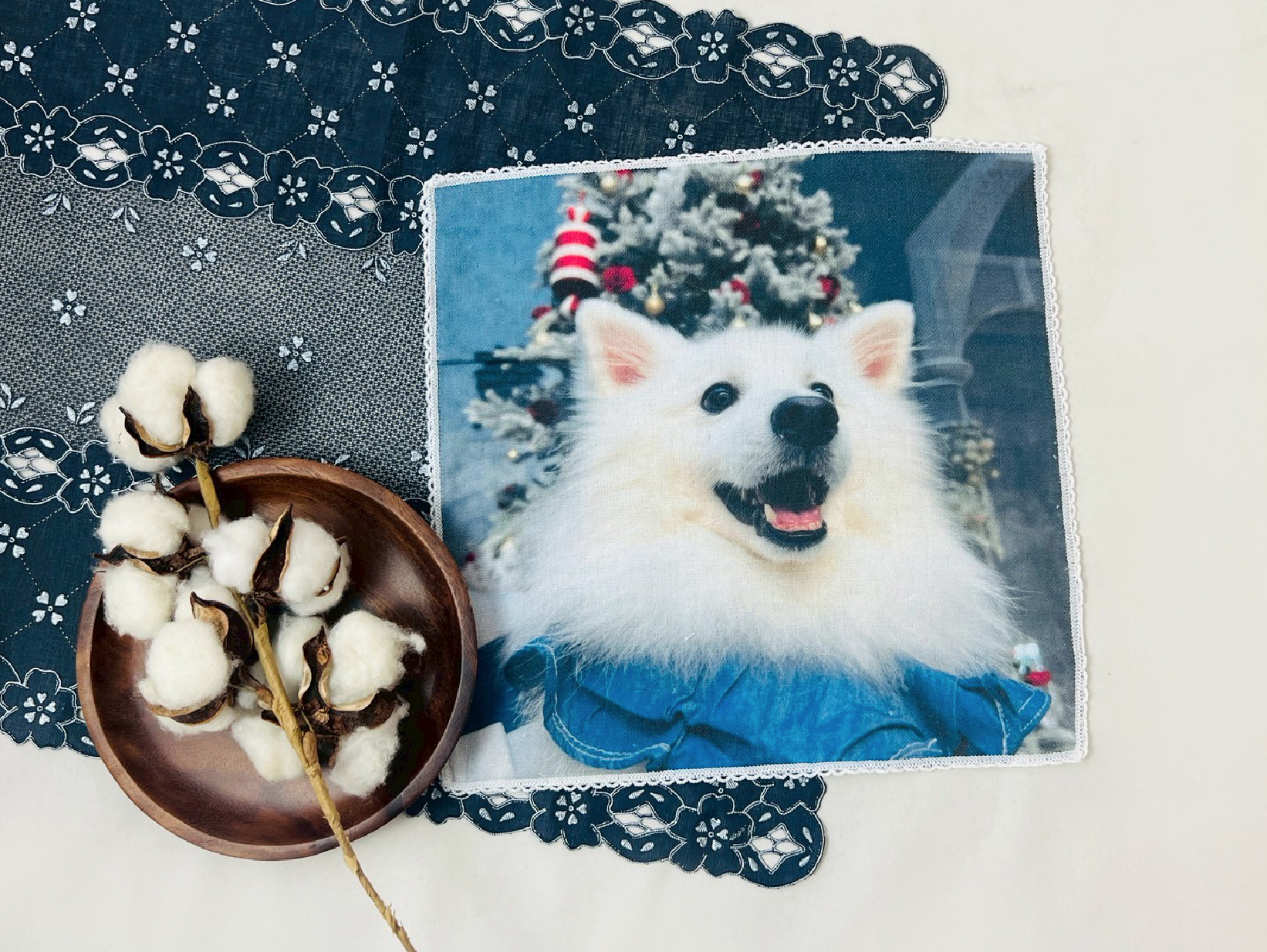 把牠最燦爛的笑容,輕輕留在一條小方巾上。那些一起走過的日常與陪伴,不再只是回憶,而是能被觸摸、被珍藏的溫柔片刻。(客戶製作實例)