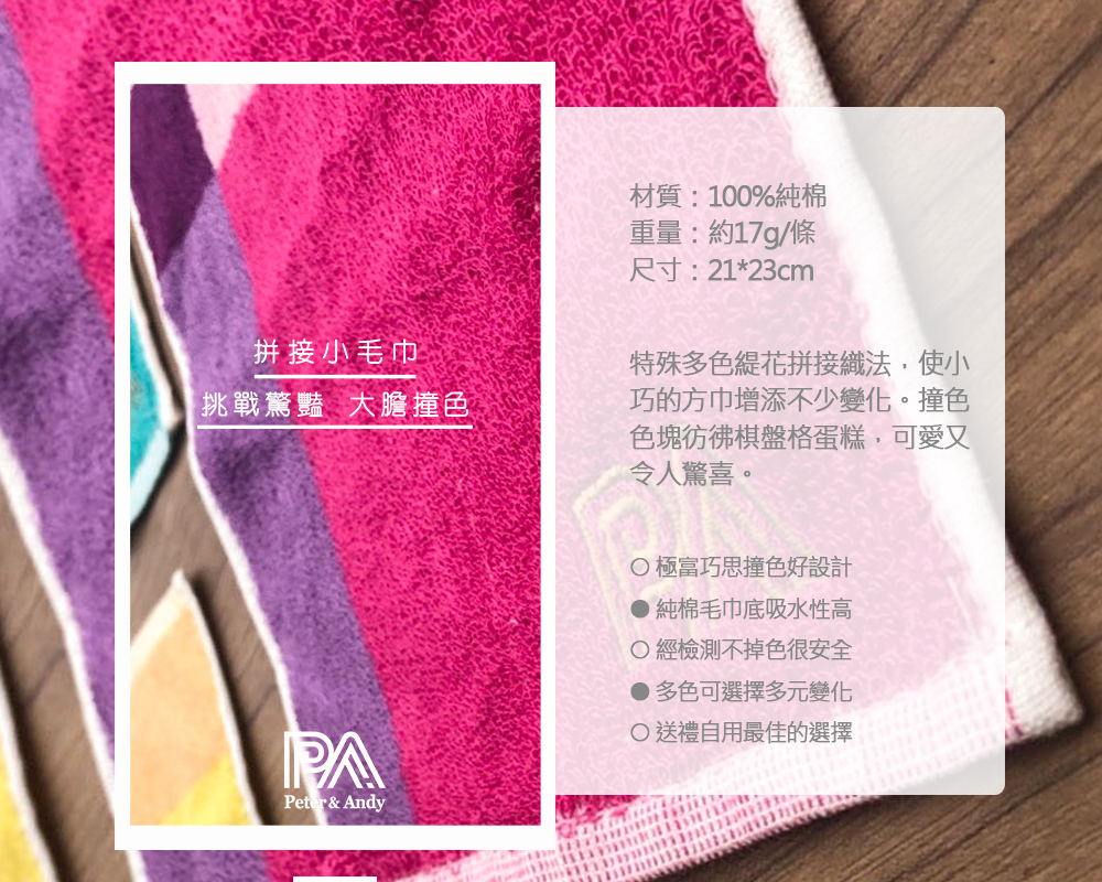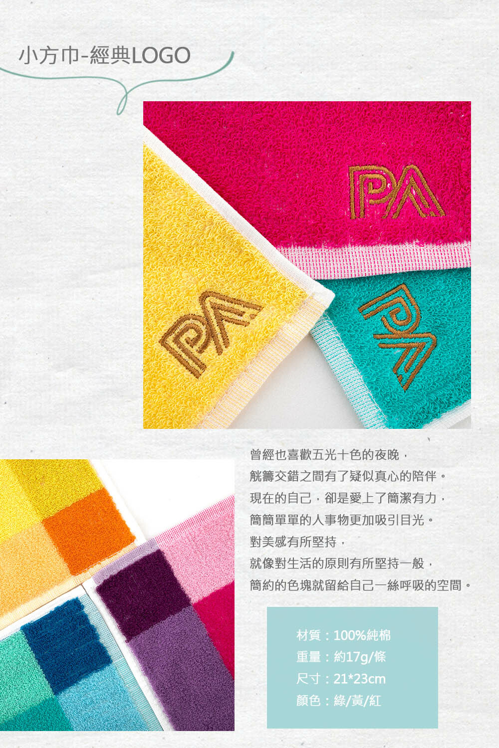 材質:100%純棉 重量:17g/條(±5%) 尺寸:21*23cm(±5%) 顏色:綠/黃/紅
