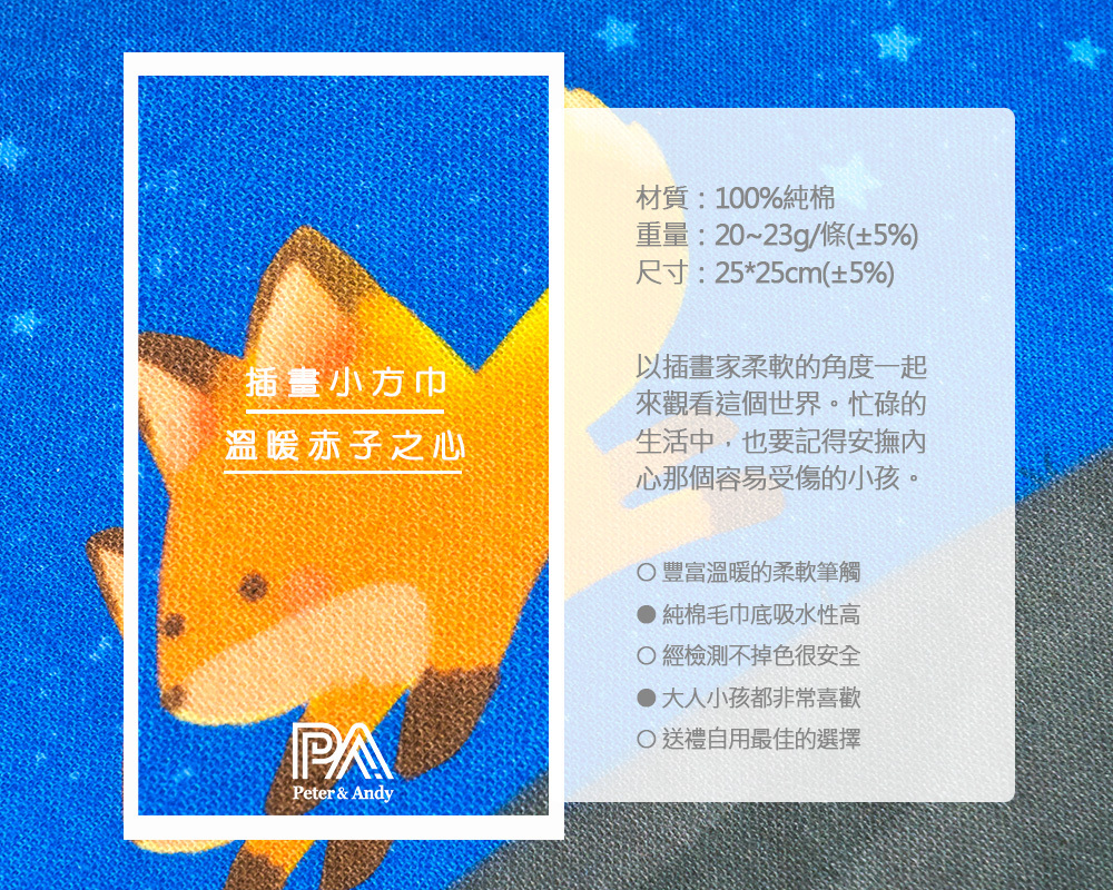 材質:100%純棉 重量:20~23g/條(±5%) 尺寸:25*25cm(±5%)