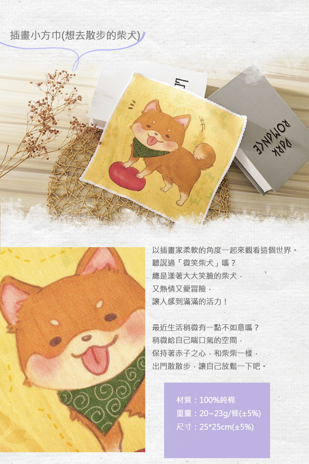 插畫小方巾(想去散步的柴犬)
