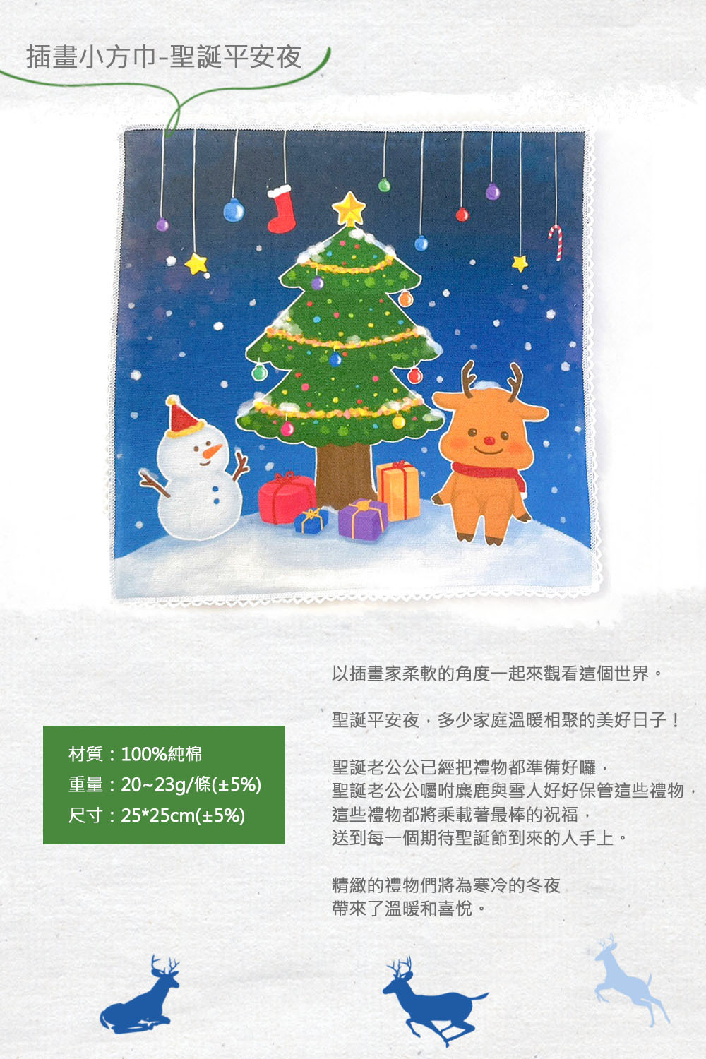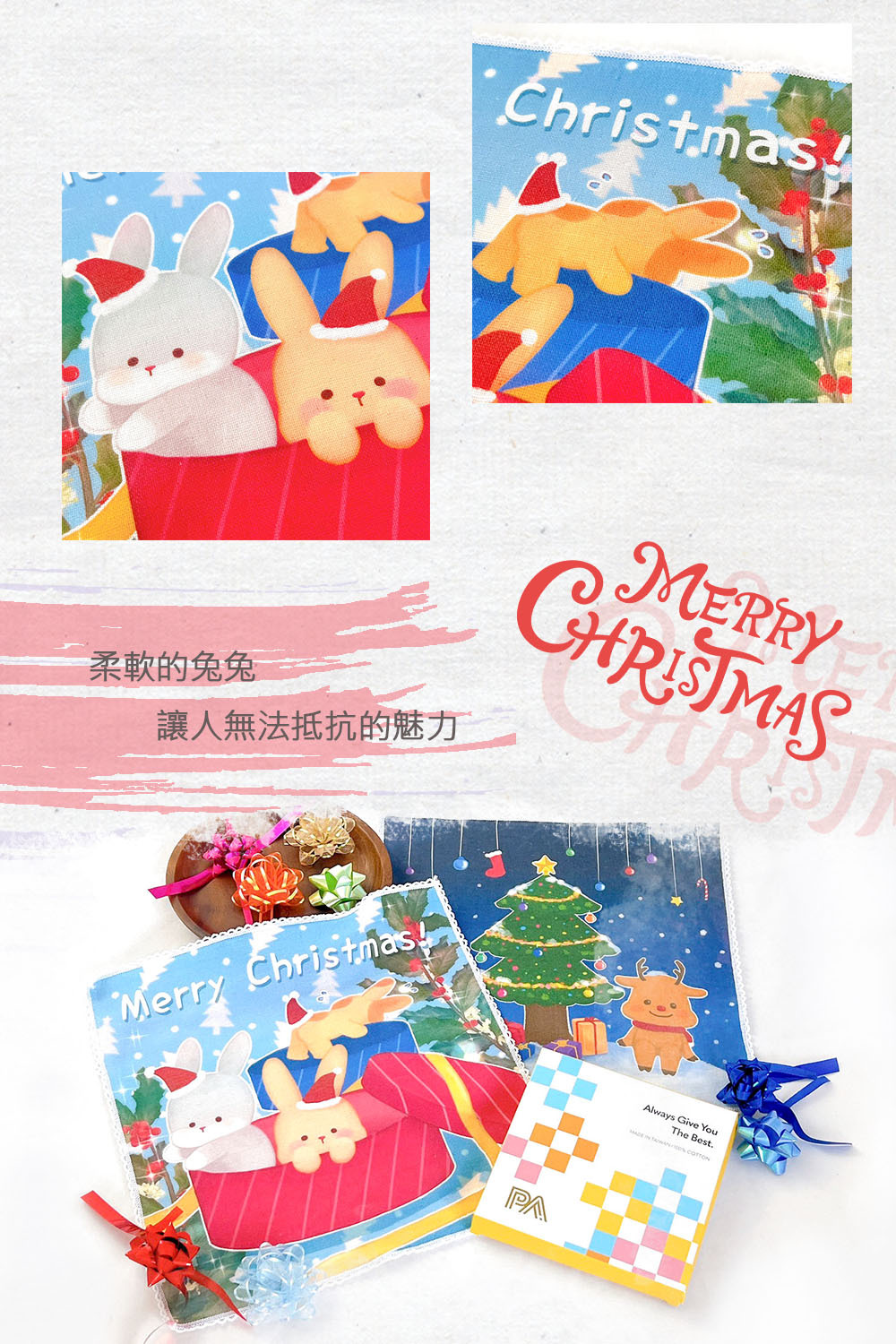 包含聖誕系列小方巾*2及精緻禮盒包裝*1